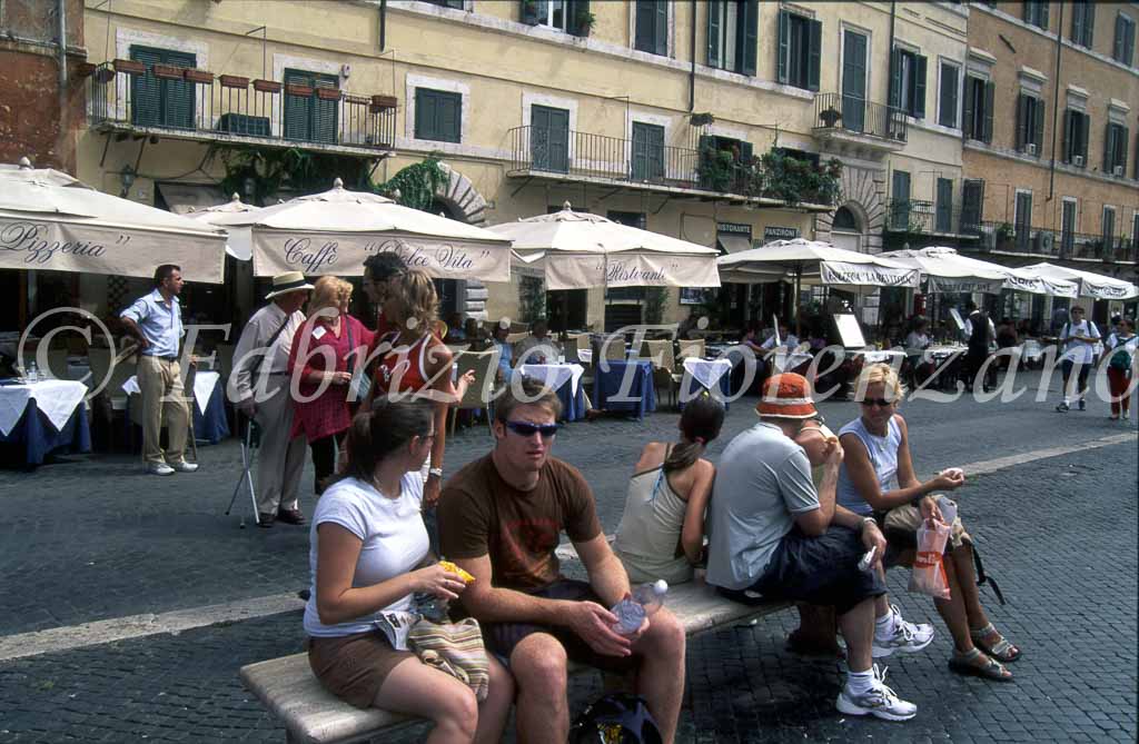 Piazza Navona, with its Fontana dei Fiumi, is an ideal starting point for pleasant night strolls along the narrow and picturesque streets of the neighbourhood – an atmosphere that may be found also in the areas surrounding Campo de’ Fiori and the Trevi Fountain. During the day, street merchants selling souvenirs of Rome and many street artists and painters who take quick portraits of the tourists or sell fine prints of the city populate the square. Restaurants and cafés follow one another and are always very busy, perfectly integrating themselves into the harmonic yet solemn architectonic appeal of the city.
