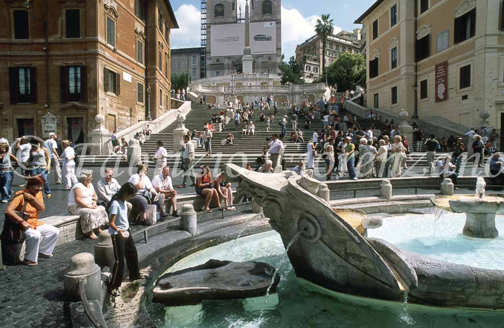Continuing our itinerary through Via Poli and Via di Propaganda, we reach the very heart of Rome, the most famous and popular Piazza di Spagna, which took its name from the palace home to the Spanish Embassy. This charming and wonderful square is the most important meeting point for both Romans and the thousands of tourists who have been populating it 24 hours a day all year long for the last two centuries at least. Piazza di Spagna is also a very elegant shopping area, very close to Via Margutta and Via del Babbuino where many artists live and work, between Piazza di Spagna and Piazza del Popolo.