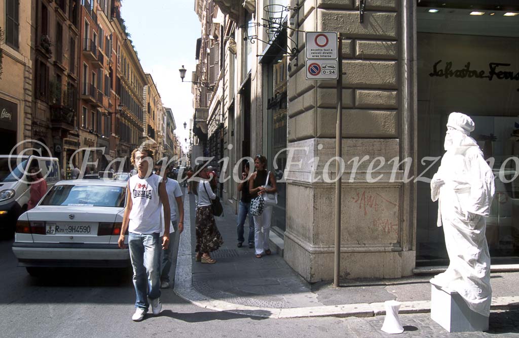 Across Trinità dei Monti begins Via dei Condotti, renowned for its elegant and refined stores of Italian fashion clothing. Armani, Versace, Valentino, Ferragamo, Prada and Bulgari are only a few of the many world-famous fashion designers whose stores may be found along this very central Roman avenue, now frequented by a rather diverse public. Here is also the famous Caffè Greco, where many Italian and foreign artists and intellectuals use to gather. While strolling along Via dei Condotti it is also easy to encounter one of the many exceptionally skilled mimes who, posing perfectly still as if they were made of stone, may be mistaken for real statues unless one pays close attention to them.