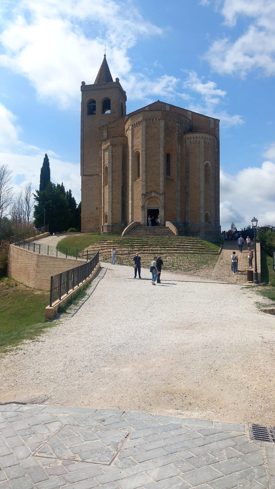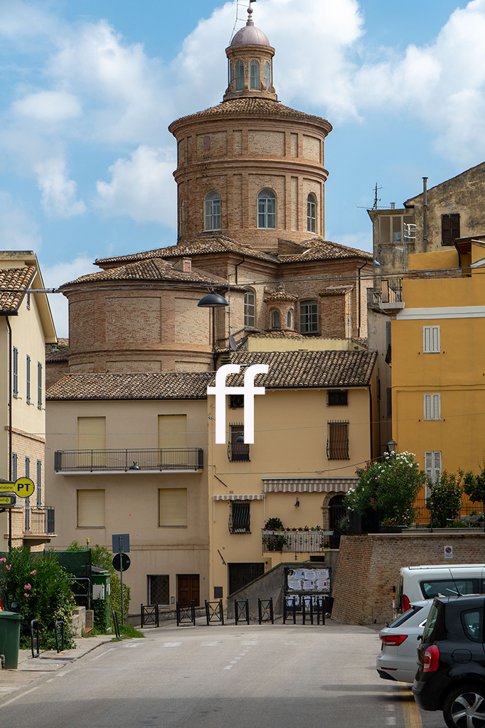 The spectacular and refined medieval architecture of the church of Santa Maria della Rocca. Marvelous both for its location and its structural form. The building is surrounded on three sides by cliffs overlooking the surrounding valleys, and offers spectacular views of the Marche hills.
